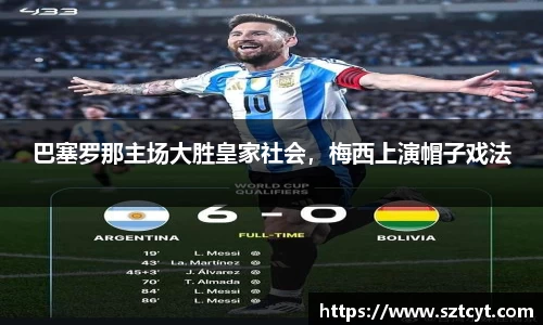 巴萨的进攻狂潮并未停止。比赛第70分钟,梅西再次站了出来。他在中场得球后,迅速带球突破,面对皇家社会的防守球员,他展现了超凡的个人技巧,一路带球杀入禁区。随后,他在三名防守球员的包围下仍然找到了射门的机会,皮球如闪电般飞入球门,完成了他本场比赛的帽子戏法。诺坎普再次沸腾,球迷们为这位巴萨传奇球星的神奇表现而欢呼雀跃。